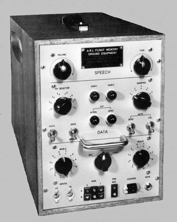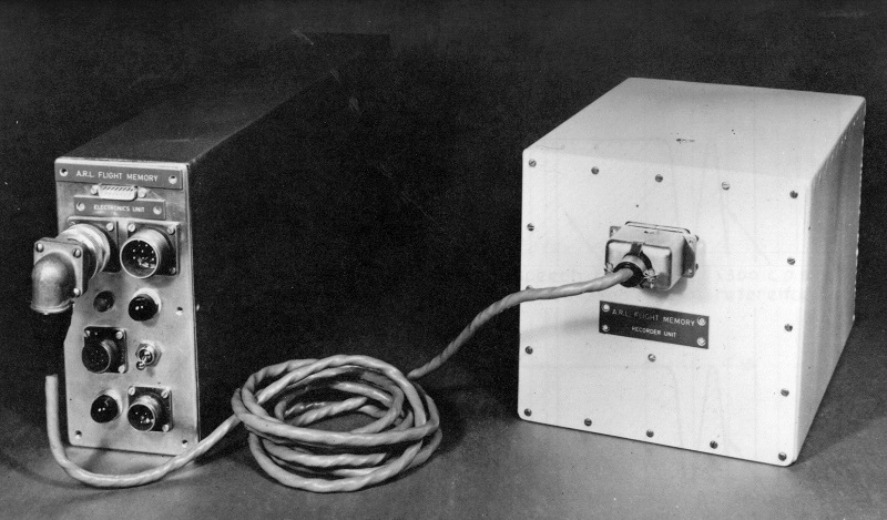 Dr Warren referred to his invention as the "ARL Flight Memory system". The term "black box" was believed to have been attributed to a journalist. In the early days black box was in common usage for such things as a mystery box of electronics for which the main interest was in what goes in and what comes out rather than what is inside the box and how it works. Black Box has now become the accepted term recognized by the general public for accident recorders even though, for aircraft, a readily distinguishable orange colour is standard. In 1958 Dr Warren reported (Ref. 2) on extensive cockpit microphone tests he had undertaken (probably in 1957) on Vickers Viscount and Douglas DC-6B planes under arrangements provided by the Department of Civil Aviation. He concluded that good intelligibility could be achieved with optimum microphone choice and placement, and using noise cancelling arrangements. Prior to 1958 the emphasis for Dr Warren had been on talking about his idea and as that had attracted little interest it was decided that a demonstration unit was needed. In 1958 a magnetic wire recorder was built by instrument maker Tych Mirfield under a Commonwealth Government contract arranged by Dr Warren. The magnetisable steel wire had 0.05 mm diameter and was the same as that used in the German Minifon miniature audio recorder. The ARL recorder was fully automatic for fit-and-forget operation with a “memory” mechanism that would store four hours of pilot voice and eight instrument readings at the rate of four per second up to the moment of any accident, but would automatically erase older recording for the wire to be re-used. Wire rather than tape was chosen by Dr Warren because of its compact size and its ability to withstand much higher temperatures than tape. Dr Warren claimed that this system (let us call it Mk 1) was successfully flight tested in 1958. However, the overall design was fairly rudimentary and in some respects its performance was deficient. There appears to be a lack of documentation on the results of the flight test. With the Mk 1 recorder on hand in 1958 the lack-of-interest stalemate was finally broken in that year when the Secretary of the UK Air Registration Board, Sir Robert Hardingham, happened to see the recorder while on an informal visit to ARL. His enthusiasm was instantaneous. He arranged for Dr Warren to take the recorder to England to demonstrate it. The response to the demonstration in the UK was most encouraging. The BBC featured the recorder on evening television and Radio Newsreel. Many UK manufacturers and operators offered their support, and the British authorities began a move to make recorders mandatory in British civil aircraft. Progress in Australia had to wait until the unexplained crash of a Fokker Friendship in Mackay, Queensland, in June 1960. The judge inquiring into the mysterious crash was told of the development of the ARL crash recorder and, as a result, made a judicial order that all Australian airliners should carry recorders for pilot speech as from January 1963. In view of renewed interest in crash recording Dr Warren, who worked in the Mechanical Engineering Division of ARL, sought the help of electrical/electronic specialists from the Aerodynamics Division to design and build an updated pre-production version of the recording and recovery system with improved performance (let us call the updated version Mk 2). My black box involvement began around March 1961 when the development of the improved system of airborne recording and ground station recovery equipment was undertaken prior to in-flight testing. This was around the time of my first meeting with David Warren and found him then to be an inspirational scientist well capable of "thinking outside the box". Our friendship endured through the years. Although Dr Warren was a combustion/fuels specialist and had proven expertise in the electro-mechanical field, he had a keen interest in electrical science and was capable of defining the requirements in that area. However, he required electrical design specialists for the development of the updated system. The Mk 2 system included an update of the magnetic wire recording unit by instrument maker Tych Mirfield under an ARL contract raised by Dr Warren. It was now mounted in a fireproof enclosure with the addition of an airborne-standard connector for the flight test in which I was involved. Lane Sear (full name Walter Francis Lane Sear) and I (full name Kenneth Francis Fraser) had about equal share of the overall circuit design for the airborne recording and ground recovery electronic systems, and Walter Ernest Boswell accomplished the assembly. At the time of writing this revision (2023), Sear, Boswell and Warren are deceased. The Mk 2 updated system provided the following: